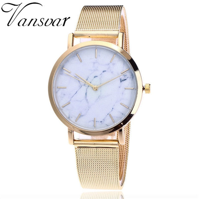 Vansvar Brand Fashion Silver And Gold Mesh Band Creative Marble Wrist Watch Casual Women Quartz Watches Gift Relogio Feminino
