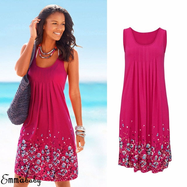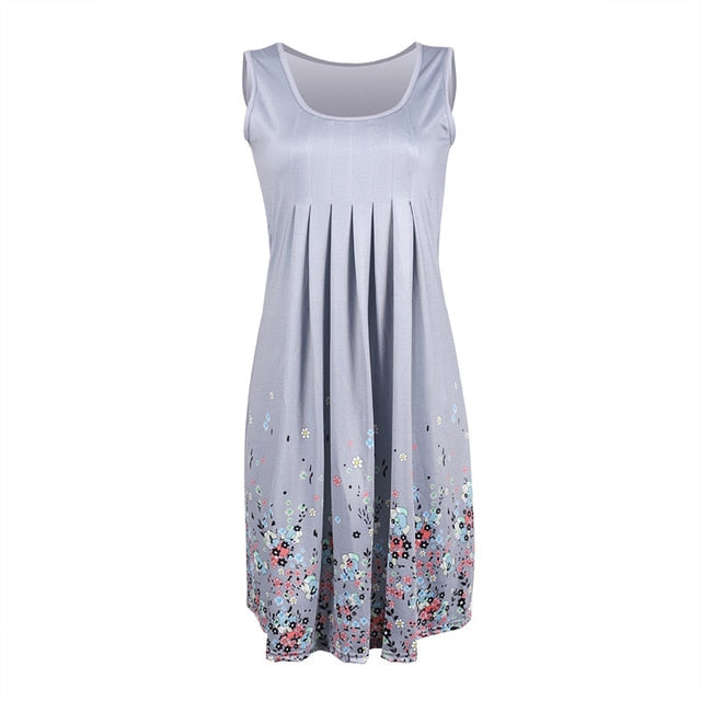 Gender: WomenMaterial: COTTONMaterial: PolyesterStyle: CasualSilhouette: StraightPattern Type: FloralSleeve Length(cm): SleevelessDecoration: DrapedDresses Length: Knee-LengthSleeve Style: TankWaistline: NaturalNeckline: O-NeckSeason: SummerBrand Name: hirigin